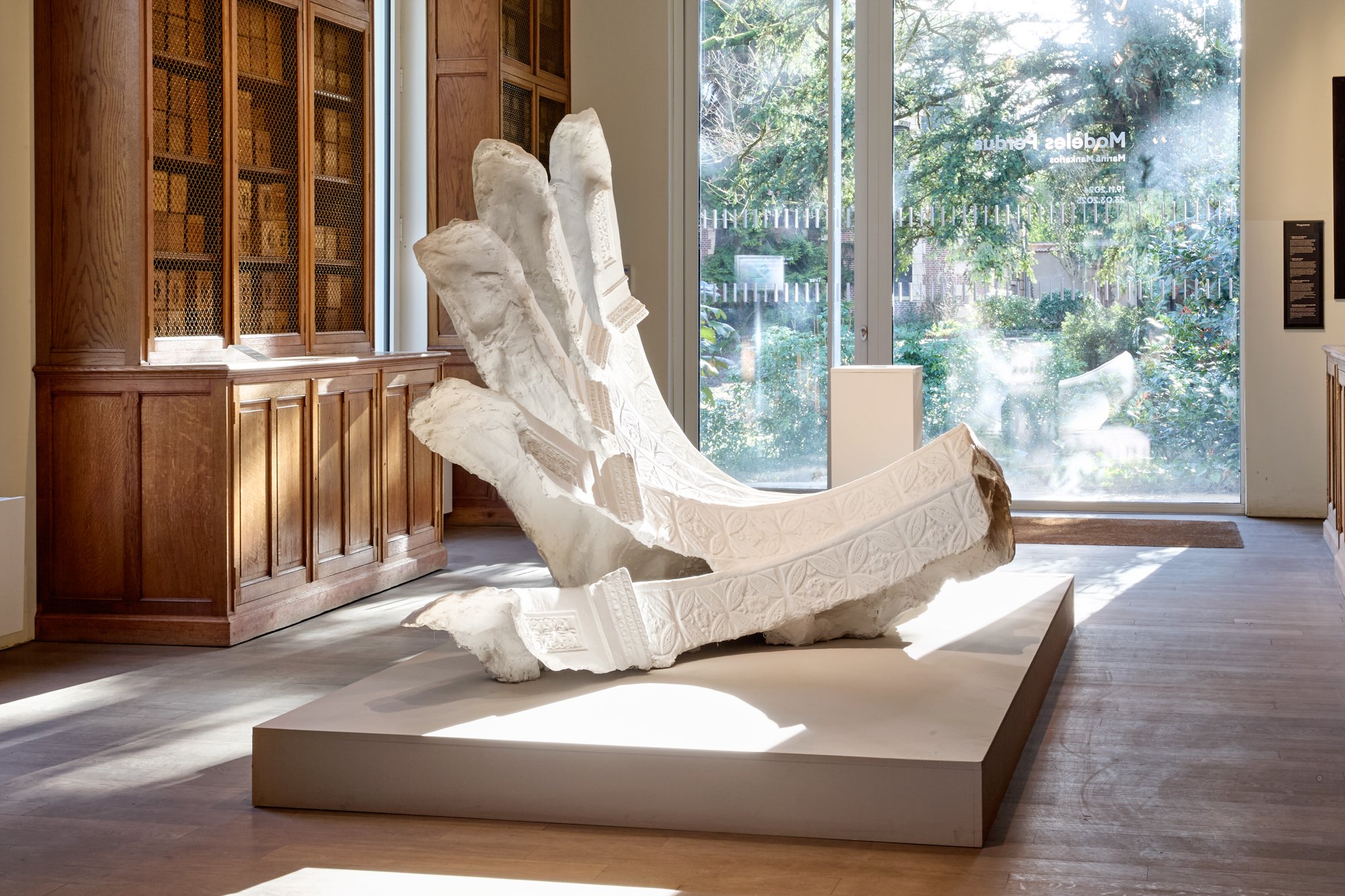 Elle manie les techniques de moulage statuaire et expérimente avec les modèles gréco-romains, créant des œuvres déformées, creusées et déséquilibrées. En jouant avec la matière, Marina Mankarios œuvre pour illustrer l’oubli, ce qu’il manque et à jamais disparaît de notre histoire. L’artiste use de ces défauts et les inscrit dans un contexte contemporain fragile : elle s’interroge sur le devenir de notre civilisation, sur l’héritage que nous transmettrons. Que restera-t-il ? Cette recherche s’approfondit vers une réflexion sur la surproduction des sociétés et leur incapacité d’absorber ce surplus qu’elle qualifie de déchet. Comment le temps opère-t-il une sélection dans ce trop inutile ?